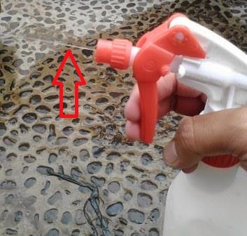 Cara keempat dapat menggunakan deterjen (merk apapun). Masukkan kurang lebih satu sendok teh deterjen kedalam wadah semprotan air dengan banyaknya air sekitar satu liter.