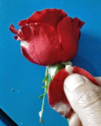 Petal mawar yang harus dipetik hanyalah bagian terluarnya saja, namun mengapa harus dipetik? Hal ini dikarenakan biasanya petal bagian terluar suka agak lusuh atau terkadang agak rusak dikarenakan sudah mengalami perjalanan yang jauh atau memiliki warna yang berbeda dengan bagian petal-petal didalamnya. Contoh pada mawar merah (sexy red) warna petal bagian terluarnya biasanya berwarna merah lebih gelap dibanding petal-petal dibagian dalamnya.